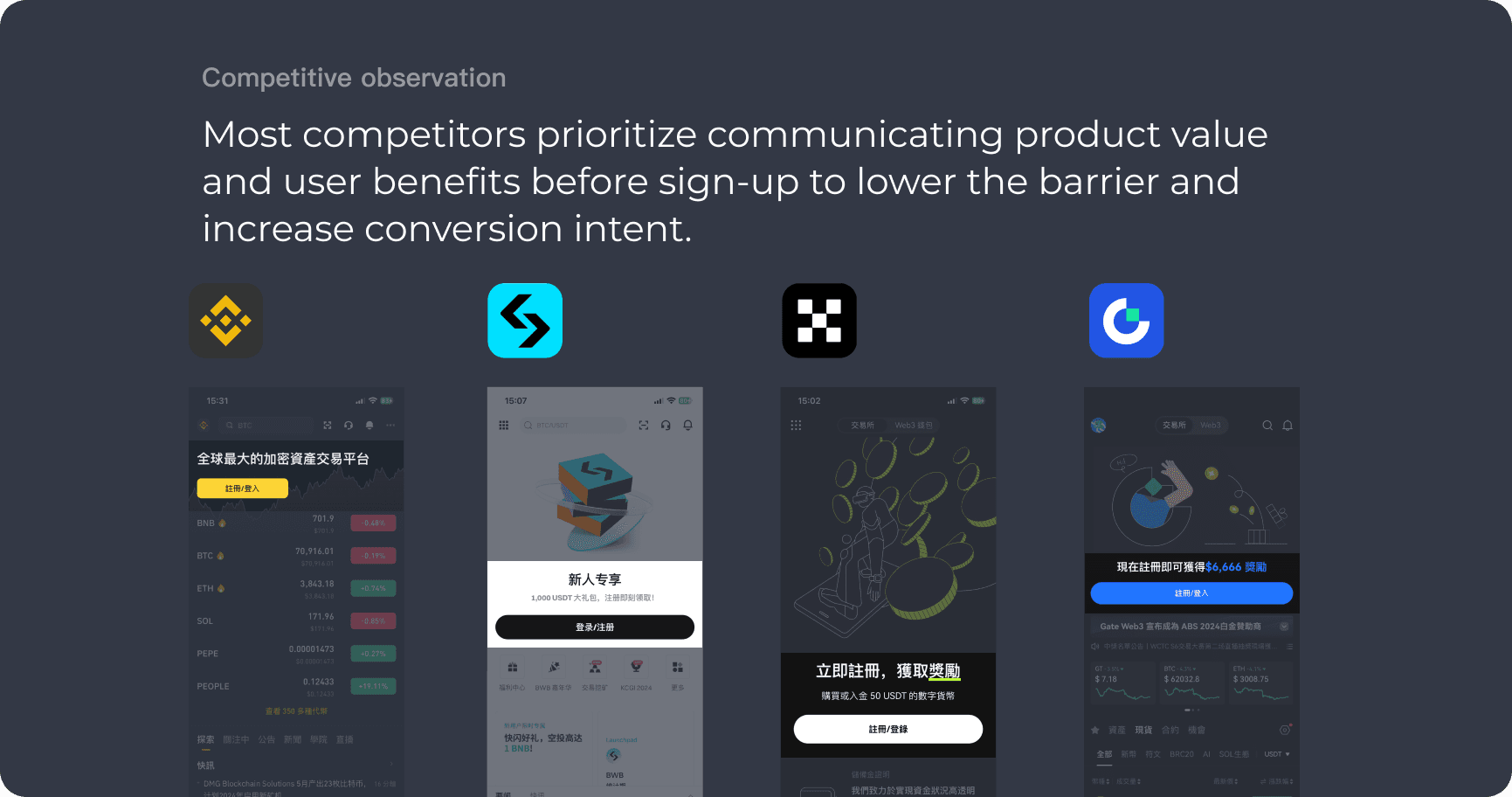 We looked at what happens before sign-up—when visitors are still deciding whether this platform is worth the commitment. The focus was to reduce hesitation at key entry points and help visitors feel ready to register, rather than pushing them to act.